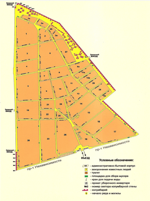 Чтобы легко найти нужное вам место захоронения, изучите схему восточного кладбища. Она дает возможность увидеть местоположение могил некрополя.